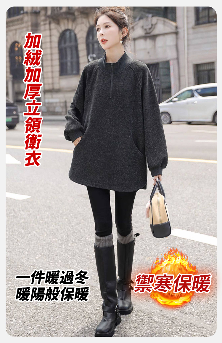 寬鬆顯瘦加絨加厚立領衛衣女