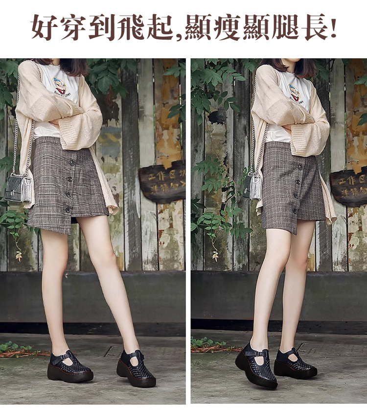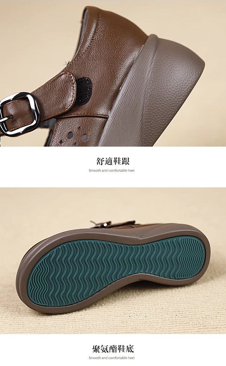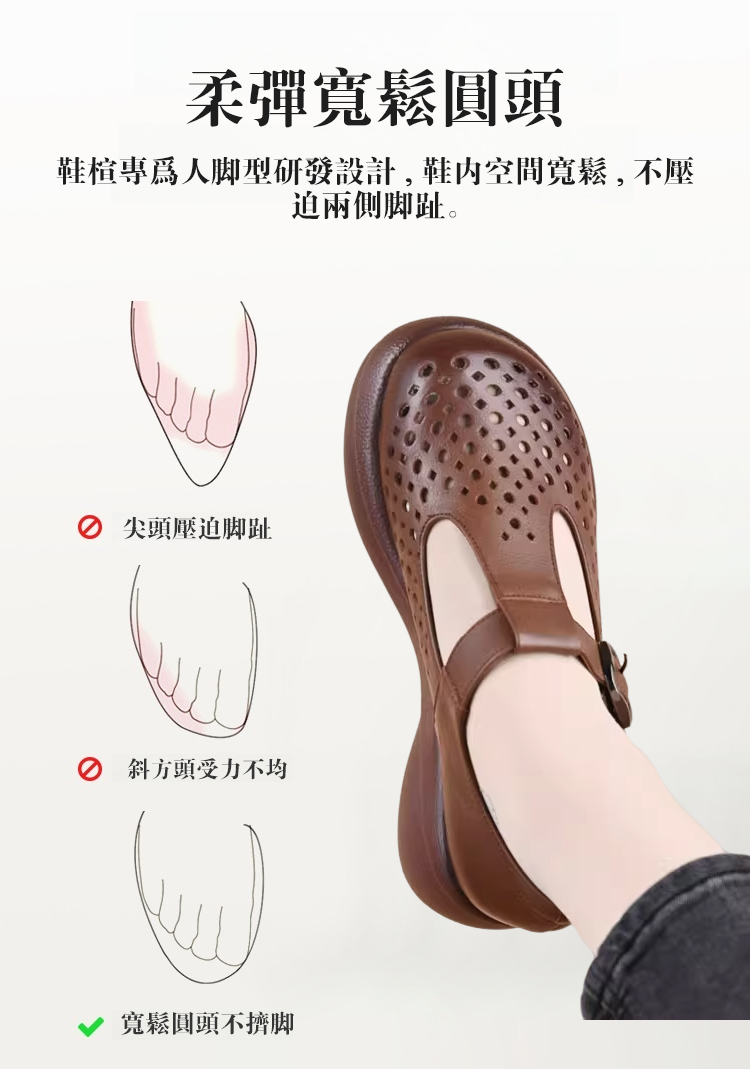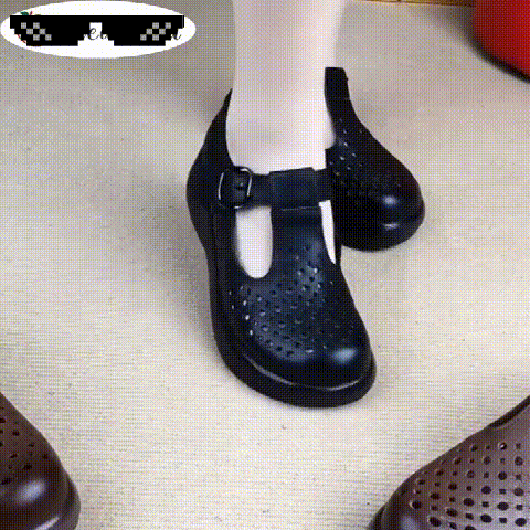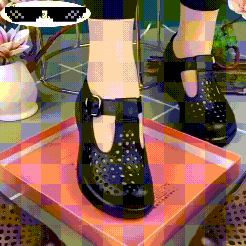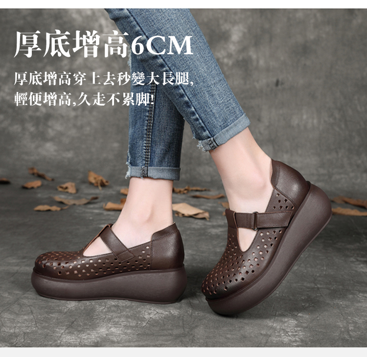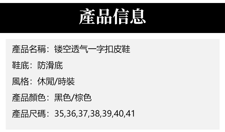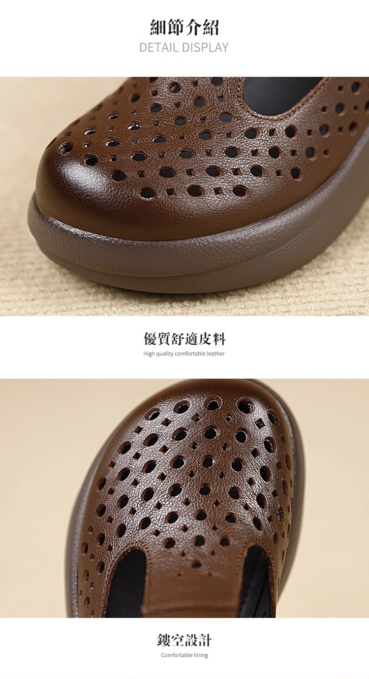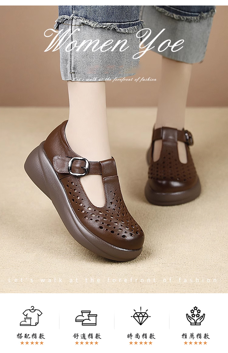 鏤空透氣一字扣皮鞋